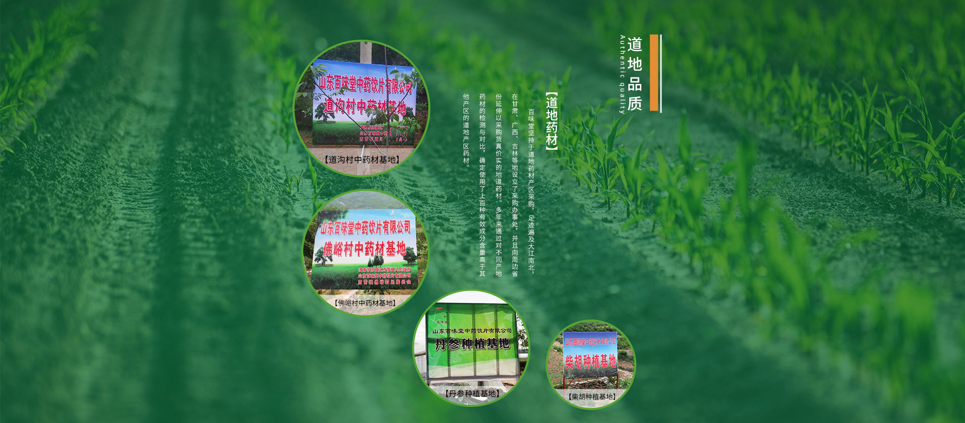 山東百味堂中藥飲片有限公司成立于2003年,是一家集中藥材種植、加工、中藥飲片生產(chǎn)、研發(fā)、銷(xiāo)售于一體的新型中藥生產(chǎn)企業(yè),是百年中藥老字號(hào)“同盛公”的傳承人。公司北臨千里黃河,南望秀美華山,風(fēng)景優(yōu)美、水土宜人。公司廠區(qū)建筑面積兩萬(wàn)平米,擁有一般飲片、小包裝飲片、直接口服飲片、發(fā)酵、發(fā)芽、毒性中藥飲片和藥食同源生產(chǎn)七條生產(chǎn)線。公司致力于中藥材的精耕細(xì)作與中藥飲片的廣泛開(kāi)發(fā),已先后建立了多個(gè)藥材種植基地和藥材原產(chǎn)區(qū)供應(yīng)基地。